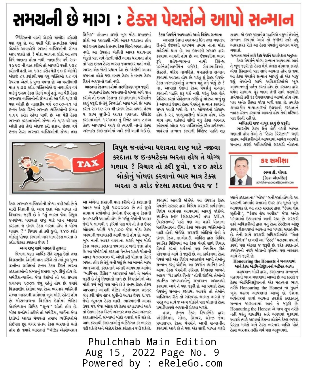સમયની છે માંગ-ટેક્સ પેયર્સને આપો સન્માન, (સ્વતંત્રતા દિન વિશેષ લેખ)