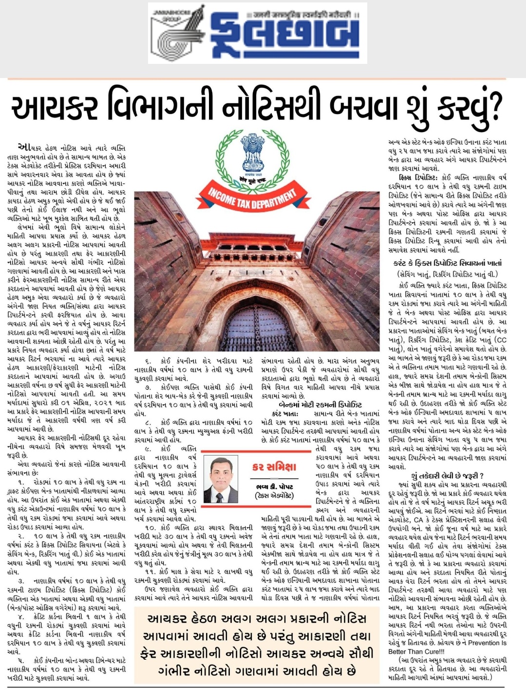 (આ ઉપરાંત અમુક ખાસ વ્યવહાર છે જે કરવાથી કરદાતા દૂર રહે તે હિતવાહ છે. આ વ્યવહારોની માહિતી આગામી અંકમાં આપવામાં આવશે)