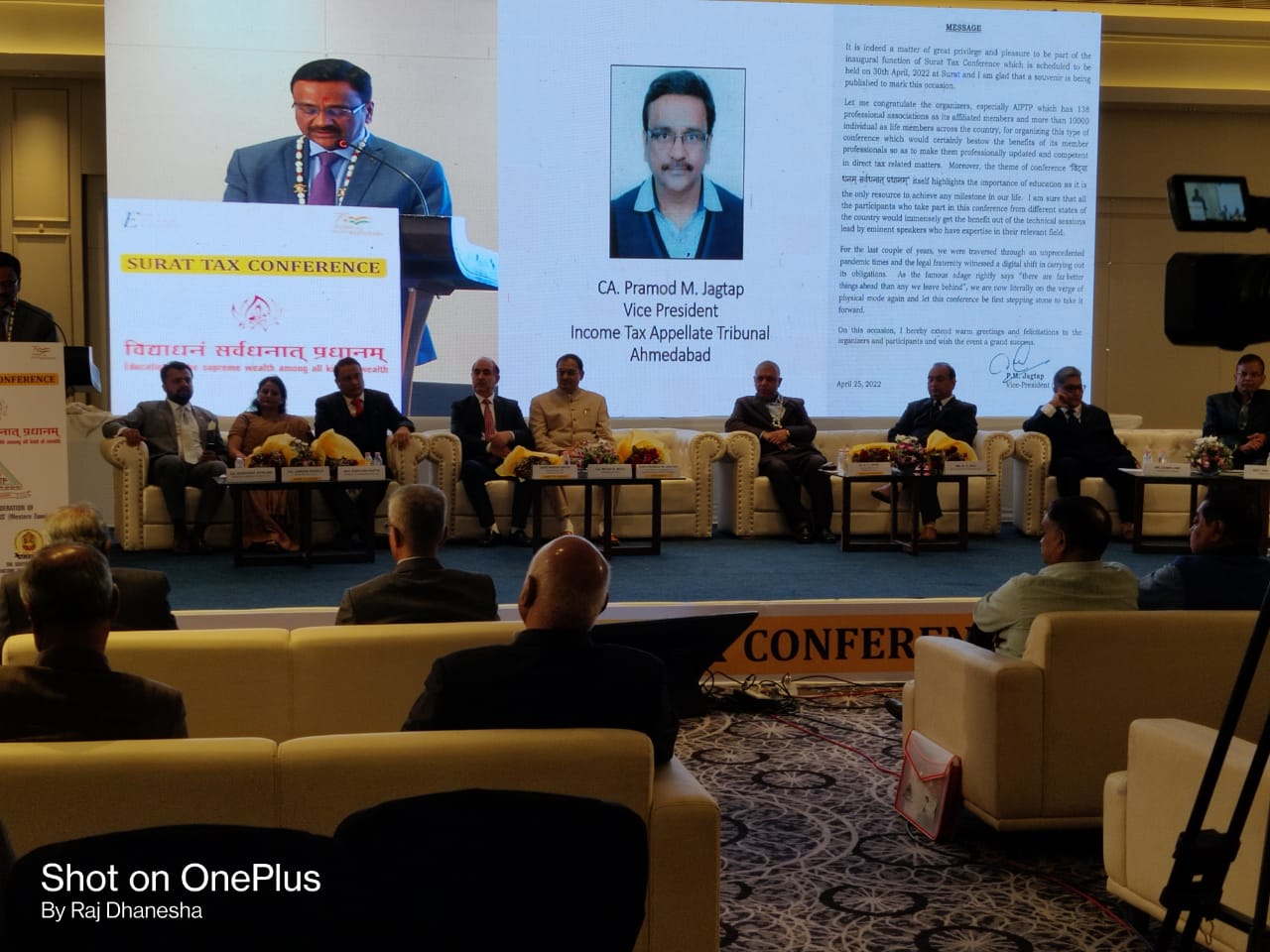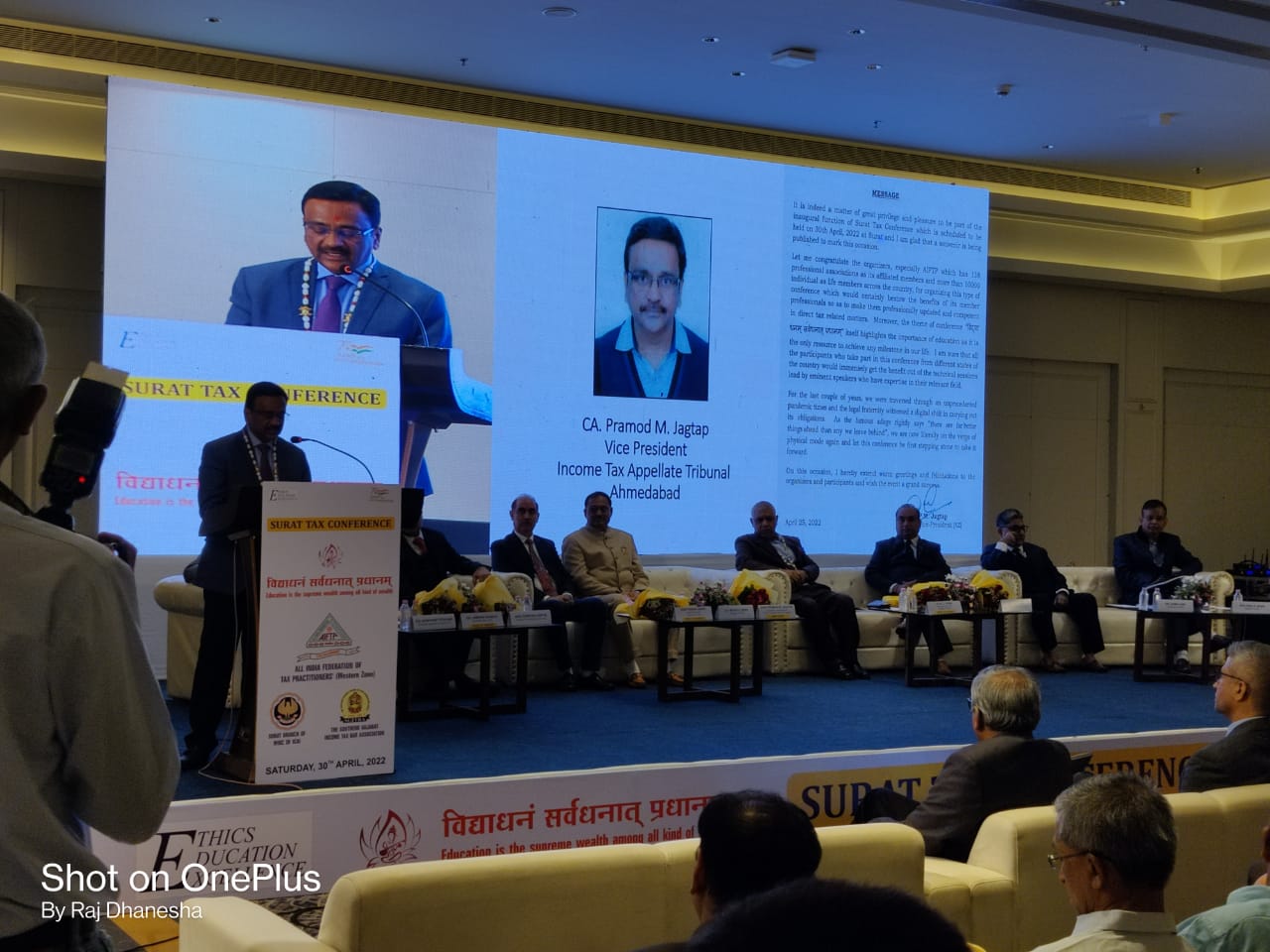 Dt. 01.05.2022: Surat witnessed a mega tax conference on the last day of April at Surat Marriot hotel, Athva lines. All India Federation of Tax Practitioners, WZ,  jointly with Surat branch of WIRC of ICAI and The Southern Gujarat Income Tax Bar Association organized this mega One Day Tax Conference. Mr Pramod Jagtap, Vice President of Income Tax Appellate Tribunal, Ahmedabad graced the inaugural session of the Tax Conference as the Chief Guest. Shri Pavan Singh, Judicial Member and Dr A L Saini, Accounts member of Income Tax Appellate Tribunal, Surat attended the conference as Guest of Honor.  The Conference covered details studies on the subject of Income Tax and Goods & Service Tax. The likes of veteran Lawyer and designated senior Advocate of Mumbai High Court Dr K Shivram chaired a session on Income Tax, which was addressed by well-known Gujarat High Court Adv. Manish J Shah. All India Federation of Tax Practitioners more commonly known as AIFTP, Deputy Chairman Adv Pankaj Ghia, Jaipur chaired the session on Goods and Service Tax which was addressed by dynamic speaker from Amritsar Mrs Aanchal Kapoor. The two technical session were followed by brain storming brain trust session where the queries raised by the tax professionals were discussed at length. The likes of Adv. Nikita Badheka, Mumbai, Adv. Hemant Desai thrown light on Goods and Service Tax where as CA Yogesh Shah Ahmedabad & CA Ramesh Malpani discussed the questions relating to Income Tax. CA S K Kabra performed the duty of the moderator for the session. Conference chairman Shri Samir Jani, Congratulated the organizers for successful conference. Past President, AIFTP M Srinivas Rao, AIFTP national Secretary General CA Jamuna Shukla, Shri Santosh Gupta, Vice President (Western Zone), Shri Anand Pasari, Vice President(Eastern Zone), Jt Secretary National Executive Committee(NEC), Shri Chirag Parekh, NEC member Bhashkar Patel with many other senior members specially attended the conference from various parts of the country. They all unilaterally congratulated CA Mitish Modi, West Zone Chairman and his team for the successful conference. Nearly 330 delegates from all over India attended the conference. Vice Chairman AIFTP WZ Adv. Ashvin Acharya, proposed vote of thanks for the conference. Advocate Shahank Mithaivala, Adv. Fenil Sukhramwala, CA Akshay Modi, Adv. Dharmesh Gangadwala and other members under the able leadership of CA Mitish Modi, put their whole hearted efforts to make the conference a grand success. Bhavya Popat, editor, Tax Today