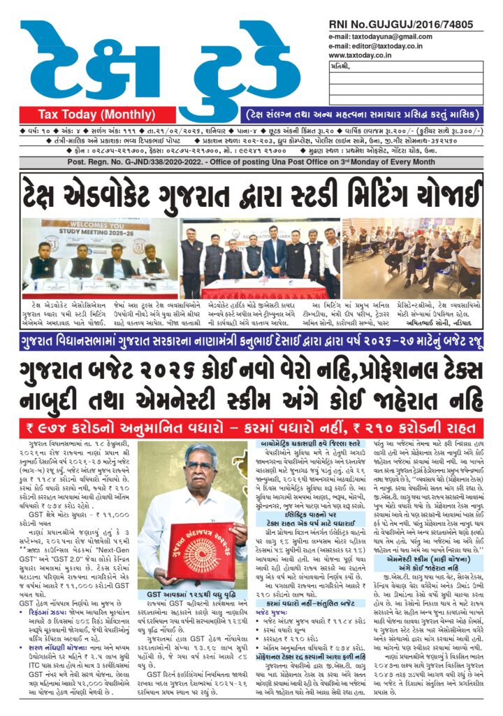 Tax Today-The Monthly News Paper :ટેક્સ ટુડે એક્સપર્ટ: CA મોનીષ શાહ, અમદાવાદ એડવોકેટ લલિત ગણાત્રા, જેતપુર CA દિવ્યેશ સોઢા, પોરબંદર એડવોકેટ ભવ્ય પોપટ, ઉના ઇન્કમ...