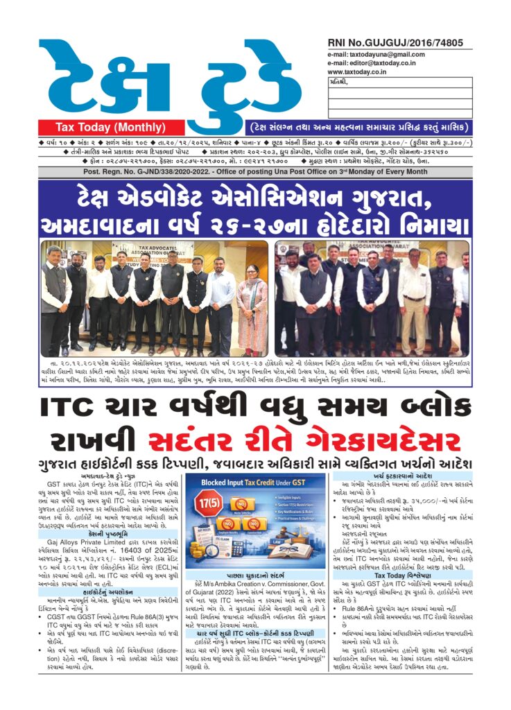 Tax Today-The Monthly News Paper :ટેક્સ ટુડે એક્સપર્ટ: CA મોનીષ શાહ, અમદાવાદ એડવોકેટ લલિત ગણાત્રા, જેતપુર CA દિવ્યેશ સોઢા, પોરબંદર એડવોકેટ ભવ્ય પોપટ, ઉના જી.એસ.ટી....