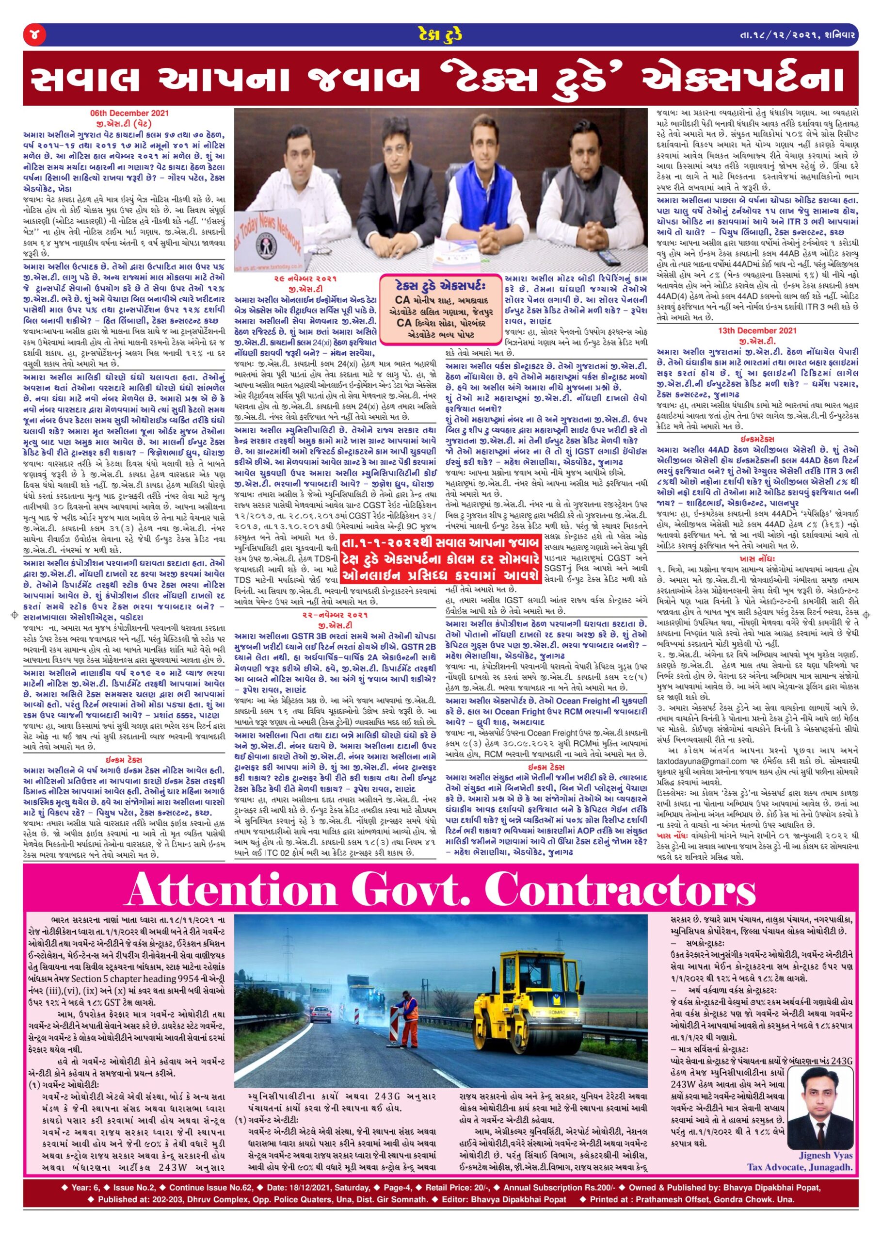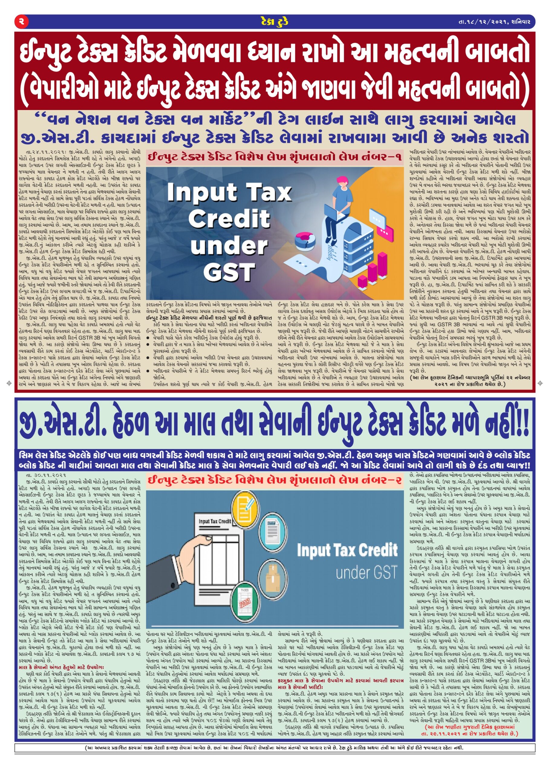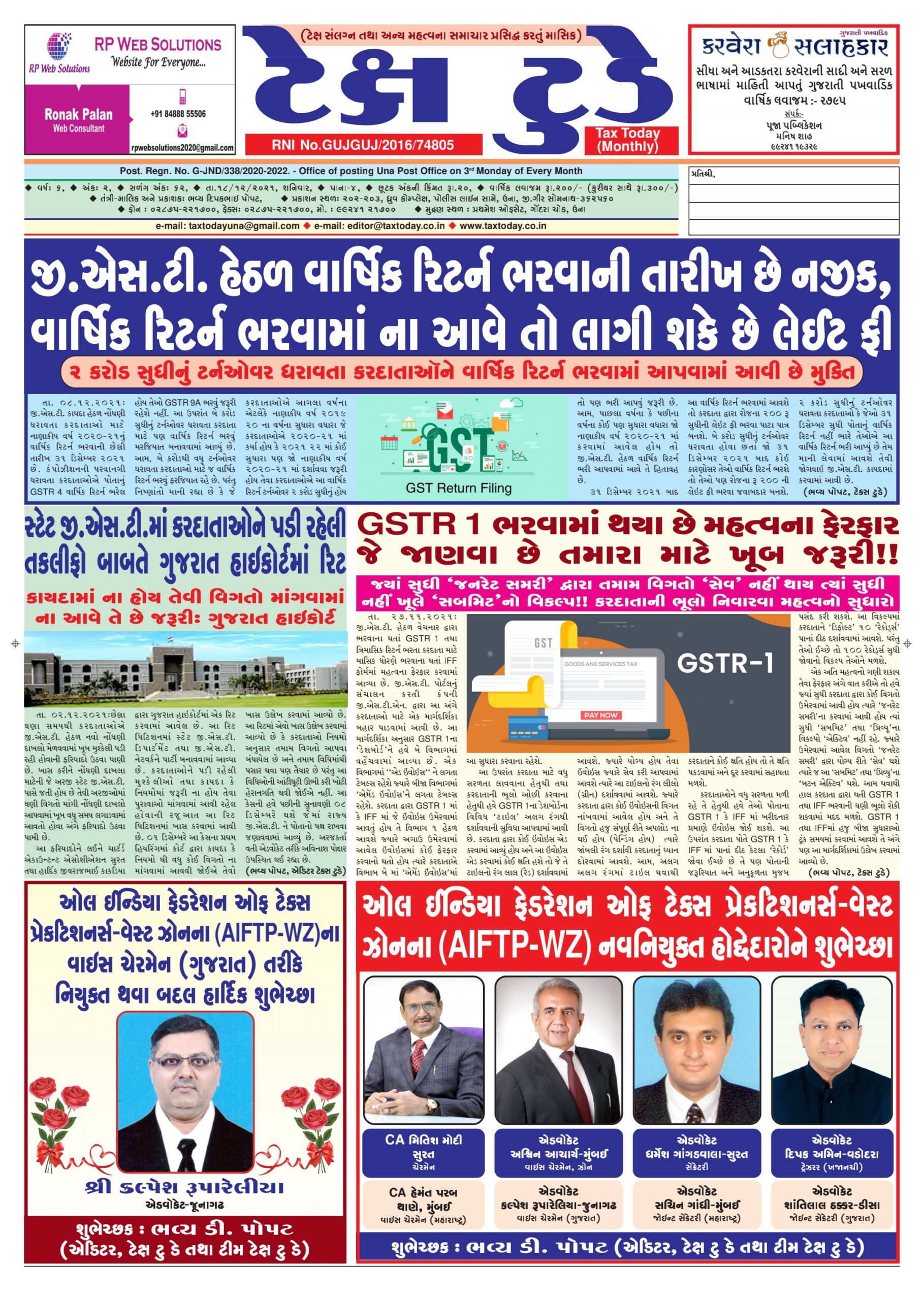 E Edition Top News Tax Today December 2021 Bhavya Popat December 19, 2021 Spread the loveReading Time: < 1 minuteTo read Tax Today in PDF, click below mentioned link. Tax Today-18 -Decembe-2021 Tags: Tax Today Continue Reading Previous ઇન્કમ ટેક્સ રિટર્ન નિયમિત ભરવું છે જરૂરી-નિયમિત રિટર્ન ભરવાના છે આ ફાયદા…Next મહેસાણા ખાતે સેન્ટ્રલ જી.એસ.ટી. સાથે ઓપન હાઉસનું આયોજન: વેપારીઓની સમસ્યાઓ ઉપર થઈ ચર્ચા More Stories Top News તમાકુ ઉત્પાદનોમાં RSP આધારિત GST: વેપારીઓ માટે રીટર્ન ભરવામાં અનેક મુશ્કેલીઓ Guest Writer (Article from Expert) April 13, 2026 0 Top News GST WEEKLY UPDATE :2/2026-27 (12.04.2026) By CA Vipul Khandhar Guest Writer (Article from Expert) April 13, 2026 0 Top News Financial year just ended!! Do follow this financial Check List by Adv. Ronak Jain Guest Writer (Article from Expert) April 8, 2026 0