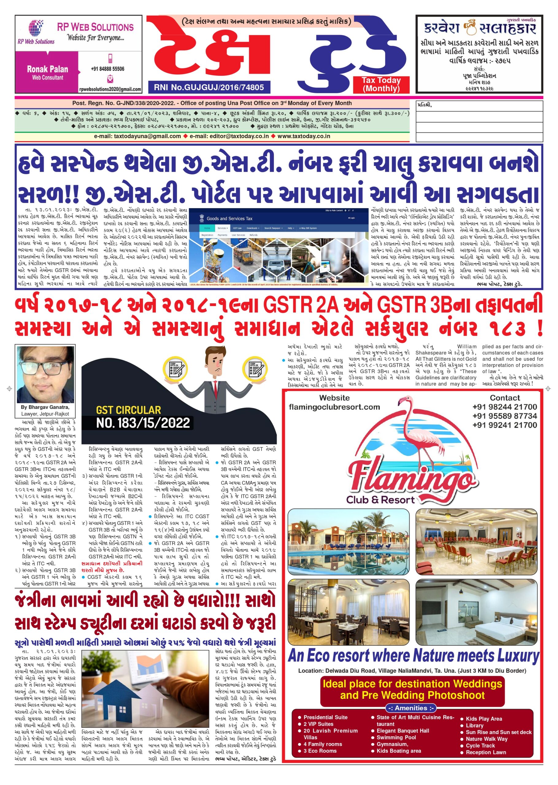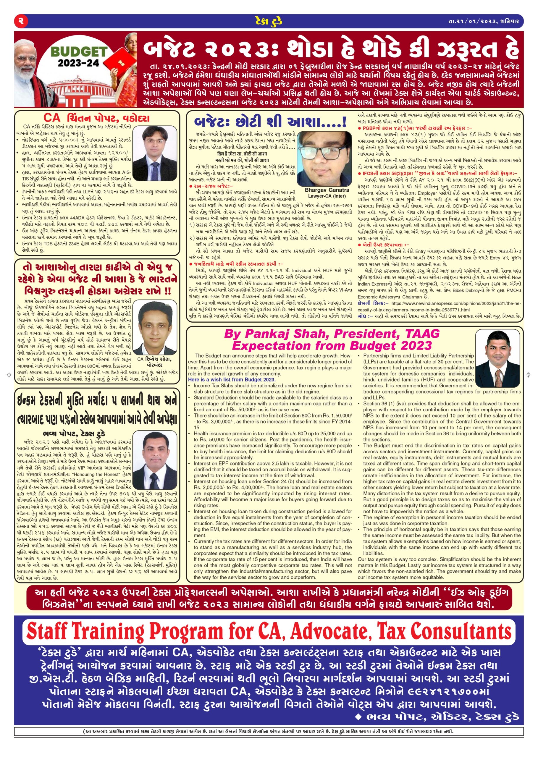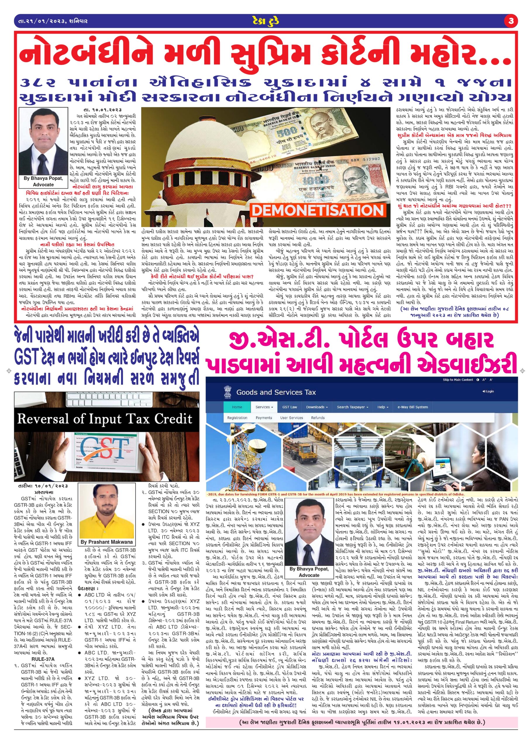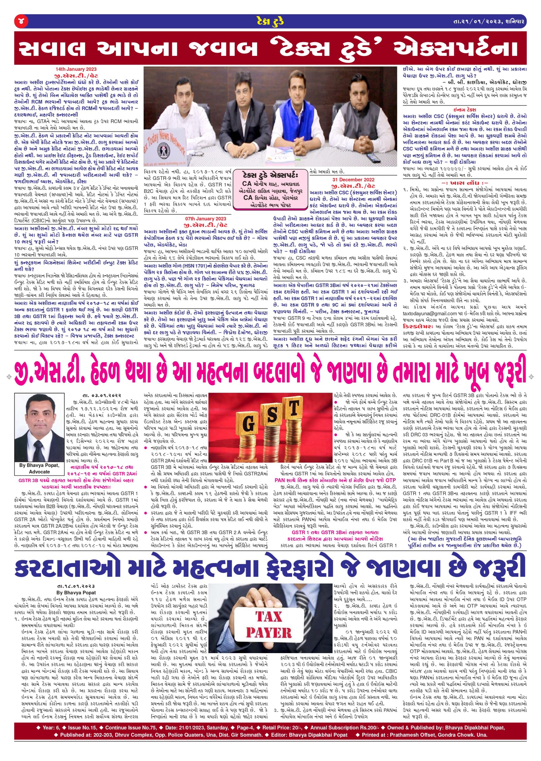 Tax Today News Paper E Edition Top News Tax Today January 2023 Bhavya Popat January 28, 2023 Spread the loveReading Time: < 1 minute Tax Today PDF Tax Today-21-01-2023 Tags: E Edition, Tax Today Continue Reading Previous બજેટ 2023: થોડા હે થોડે કી ઝરૂરત હેNext સવાલ આપના જવાબ ટેક્સ ટુડે એક્સપર્ટના (આ કૉલમ દર શનિવારે પ્રસિદ્ધ થશે) 28TH January 2023 More Stories Top News ઇનપુટ ટેક્સ ક્રેડિટ (ITC) પર અવારનવાર પૂછાતા પ્રશ્નો (FAQ) સ્વરૂપમાં માર્ગદર્શિકા Guest Writer (Article from Expert) April 22, 2026 0 Top News જી.એસ.ટી. પોર્ટલમાં ટેક્નિકલ ખામીથી ભારે મુશ્કેલી, સમયમર્યાદા વધારવાની માંગ Harshad Oza April 20, 2026 0 Top News જી.એસ.ટી. હેઠળ કમ્પોઝીશન સ્કીમમાં છો?? તો આ બાબતો જાણવી છે જરૂરી!! By Adv Bhavya Popat Guest Writer (Article from Expert) April 20, 2026 0