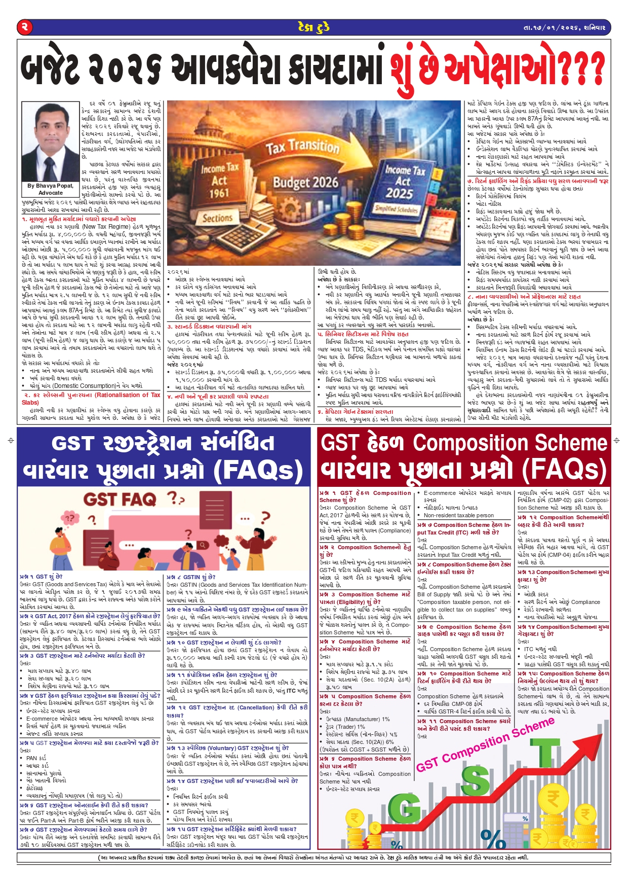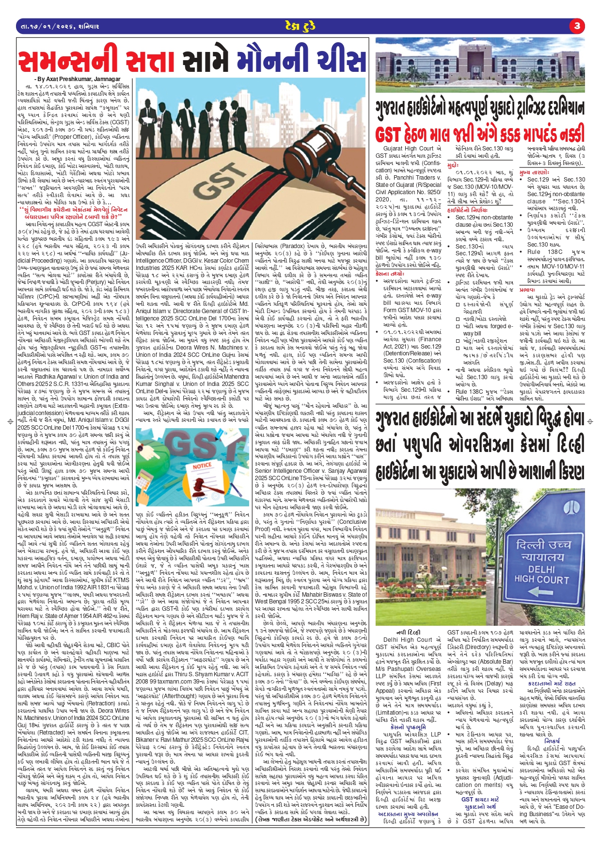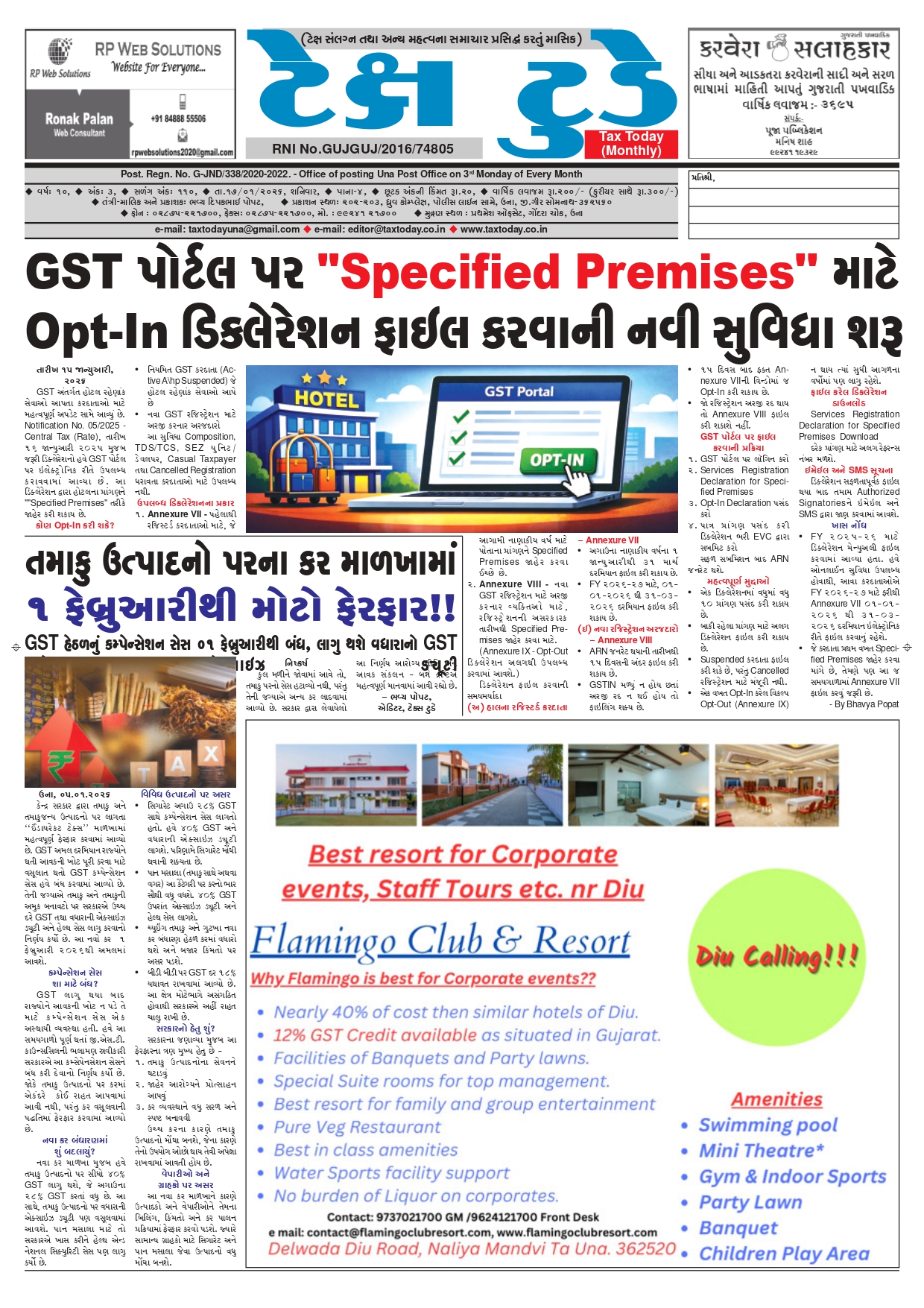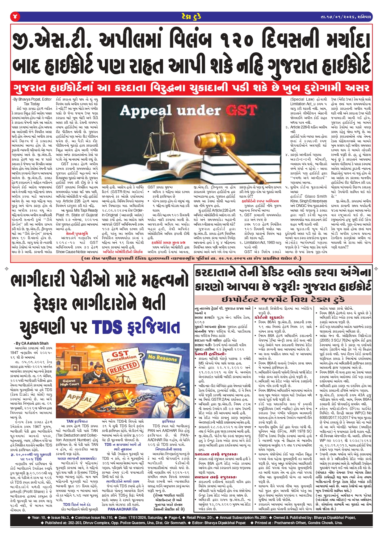 Top News Tax Today E Edition January 2026 Guest Writer (Article from Expert) February 4, 2026 0 Spread the loveReading Time: < 1 minute Tags: GST, GST Updates, Income Tax, Income Tax Updates, TaxToday Continue Reading Previous GST WEEKLY UPDATE :44/2025-26 (01.02.2026) By CA Vipul KhandharNext GST WEEKLY UPDATE :45/2025-26 (08.02.2026) By CA Vipul Khandhar More Stories Top News વિવિધ નાણાકીય વર્ષોને એકસાથે ગણીને GST નોટિસ આપી શકાય નહી: બોમ્બે હાઇકોર્ટનો મહત્વપૂર્ણ ચુકાદો Guest Writer (Article from Expert) February 10, 2026 0 Top News GST WEEKLY UPDATE :45/2025-26 (08.02.2026) By CA Vipul Khandhar Guest Writer (Article from Expert) February 10, 2026 0 Top News GST WEEKLY UPDATE :44/2025-26 (01.02.2026) By CA Vipul Khandhar Guest Writer (Article from Expert) February 4, 2026 0 Leave a Reply Cancel replyYour email address will not be published. Required fields are marked *Comment * Name * Email * Website