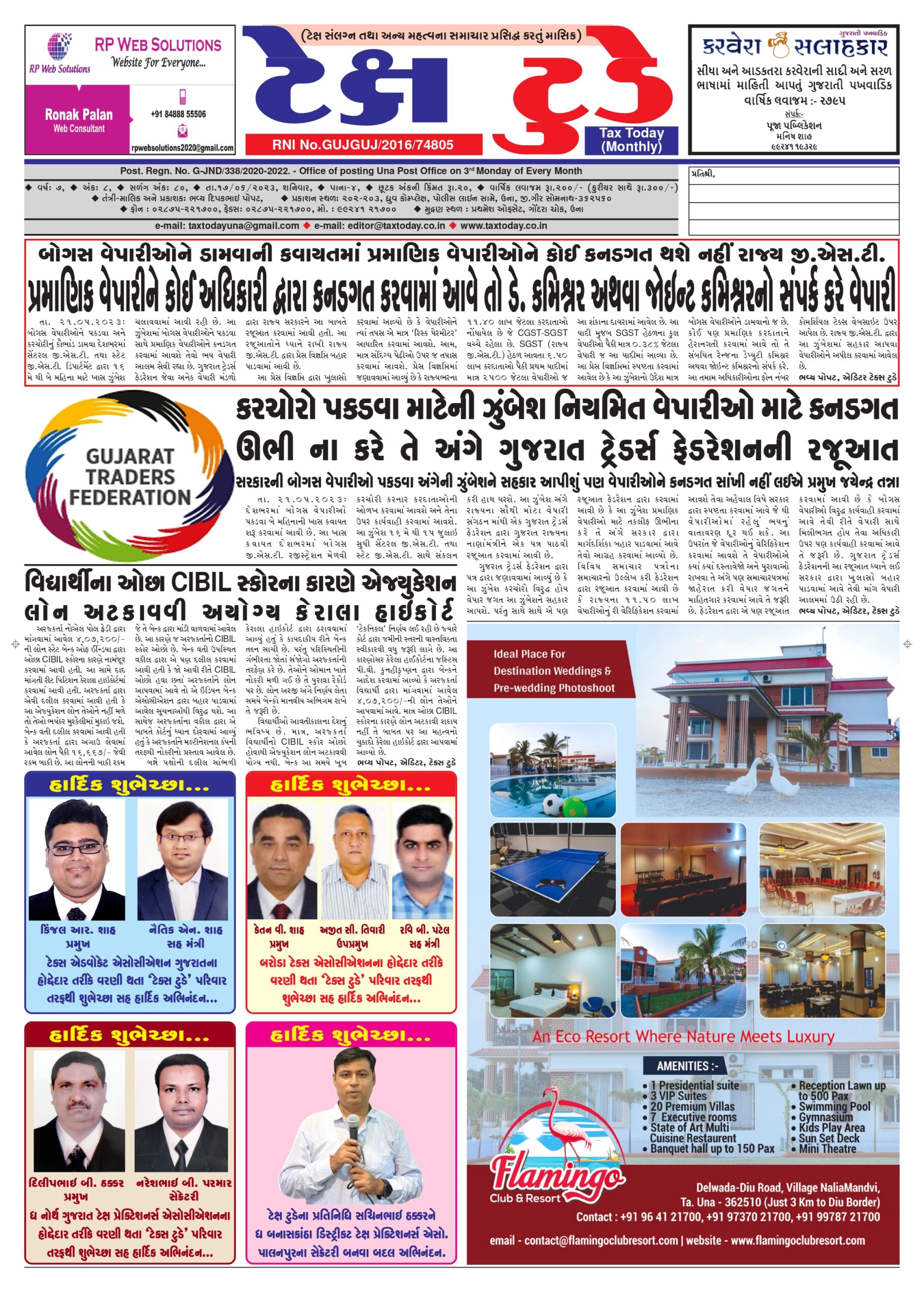 E Edition Top News TAX TODAY E-EDITION JUNE – 23 Bhavya Popat June 19, 2023 Spread the loveReading Time: < 1 minute Continue Reading Previous સવાલ આપના જવાબ ટેક્સ ટુડે એક્સપર્ટના (આ કૉલમ દર શનિવારે પ્રસિદ્ધ થશે) 17th June 2023Next GST WEEKLY UPDATE : 12/2023-24 (18.06.2023) More Stories Top News GST નોંધણી (Registration) પર સામાન્ય રીતે પૂછાતા પ્રશ્નો Guest Writer (Article from Expert) March 27, 2026 0 Top News GST WEEKLY UPDATE :51/2025-26 (22.03.2026) By CA Vipul Khandhar Guest Writer (Article from Expert) March 23, 2026 0 Top News GST અંતર્ગત બુક્સ ઓફ એકાઉન્ટ ક્લોજ કરતી વખતે ધ્યાન માં રાખવાના મુદ્દાઓની સરળ ભાષામાં સમજુતી Guest Writer (Article from Expert) March 23, 2026 0