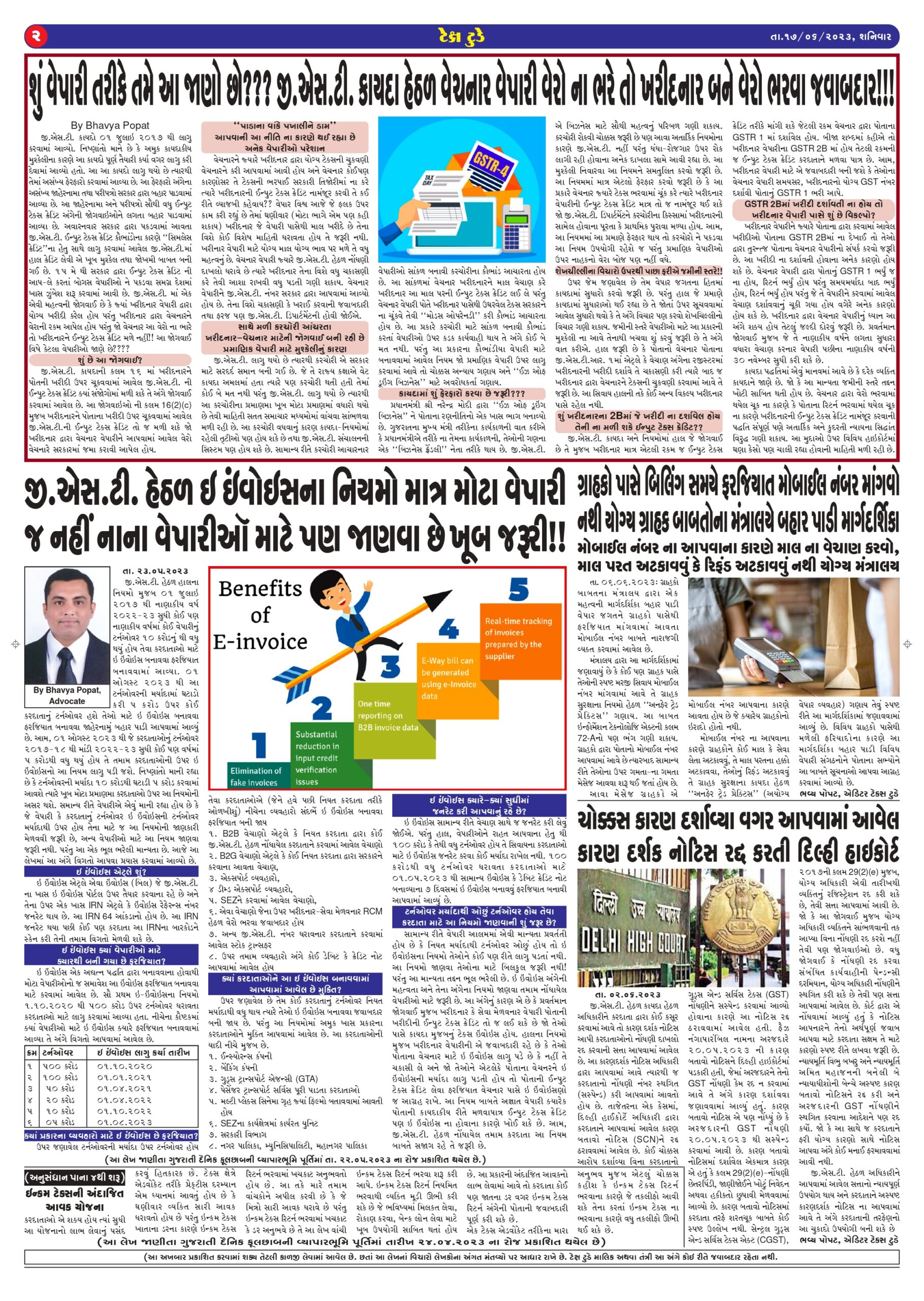 E Edition Top News TAX TODAY E-EDITION JUNE – 23 Bhavya Popat June 19, 2023 Spread the loveReading Time: < 1 minute Continue Reading Previous સવાલ આપના જવાબ ટેક્સ ટુડે એક્સપર્ટના (આ કૉલમ દર શનિવારે પ્રસિદ્ધ થશે) 17th June 2023Next GST WEEKLY UPDATE : 12/2023-24 (18.06.2023) More Stories Top News Tax Today February 2025 E edition Guest Writer (Article from Expert) March 5, 2026 0 Top News GST WEEKLY UPDATE :48/2025-26 (01.03.2026) By CA Vipul Khandhar Guest Writer (Article from Expert) March 3, 2026 0 Top News GST અંતર્ગત માર્ચ-2026 ના મહિનામાં કરવાના કાર્યની સરળ ભાષામાં માહિતી Guest Writer (Article from Expert) February 26, 2026 0
