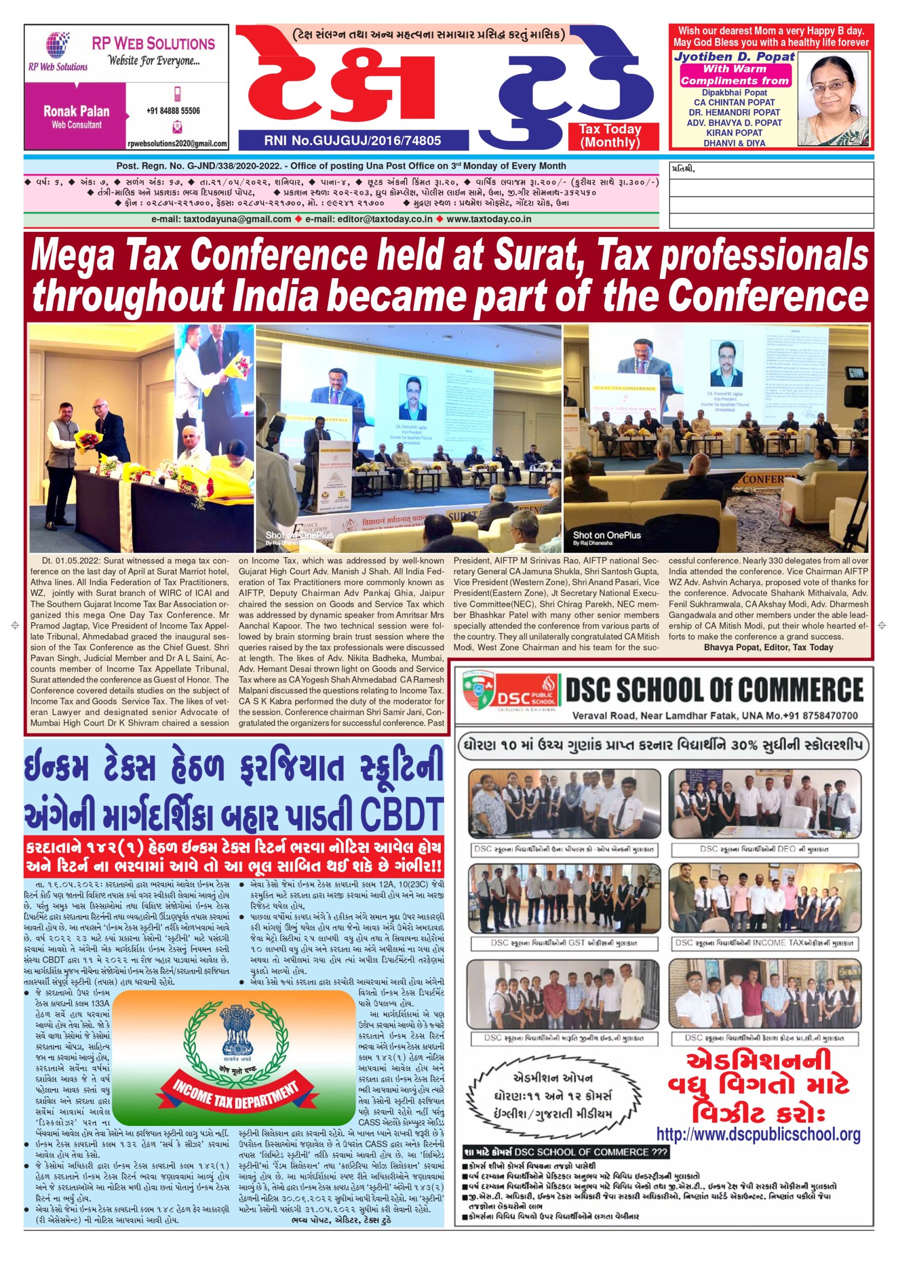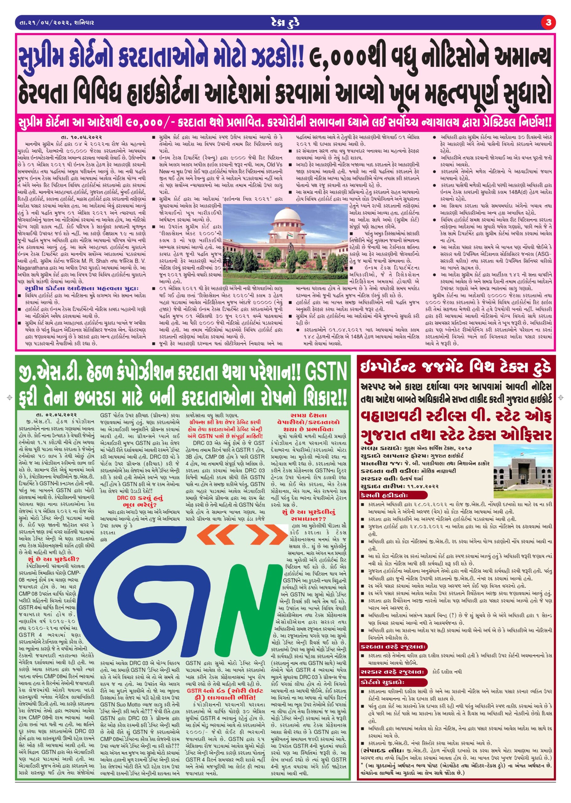 E Edition Top News Tax Today E Edition May 2022 Bhavya Popat May 21, 2022 Spread the loveReading Time: < 1 minutePage 1 Page 3 Page 4 TO DOWNLOAD TAX TODAY IN PDF, CLICK FOLLOWING LINK Tax Today-21 May-2022 Tags: E Edition, EEdition, TaxToday Continue Reading Previous માત્ર 10CCB રિપોર્ટ અપલોડ ના કર્યો હોય તે કારણે કરદાતાની કપાત અમાન્ય કરી શકાય નહીં: ITAT બેંગલોરNext સવાલ આપના જવાબ ટેક્સ ટુડે એક્સપર્ટના (આ કૉલમ દર શનિવારે પ્રસિદ્ધ થશે) 21st May 2022 More Stories Top News ગુજરાત હાઈકોર્ટનો મહત્વપૂર્ણ ચુકાદો: ટ્રાન્ઝિટ દરમિયાન GST હેઠળ માલ જપ્તી અંગે કડક માપદંડ નક્કી Guest Writer (Article from Expert) January 6, 2026 0 Top News GST WEEKLY UPDATE :40/2025-26 (04.01.2026) Guest Writer (Article from Expert) January 5, 2026 0 Top News ભાગીદારી પેઢીઓ માટે મહત્વનો ફેરફાર: ભાગીદારોને થતી ચુકવણી પર TDS ફરજિયાત Guest Writer (Article from Expert) January 5, 2026 0