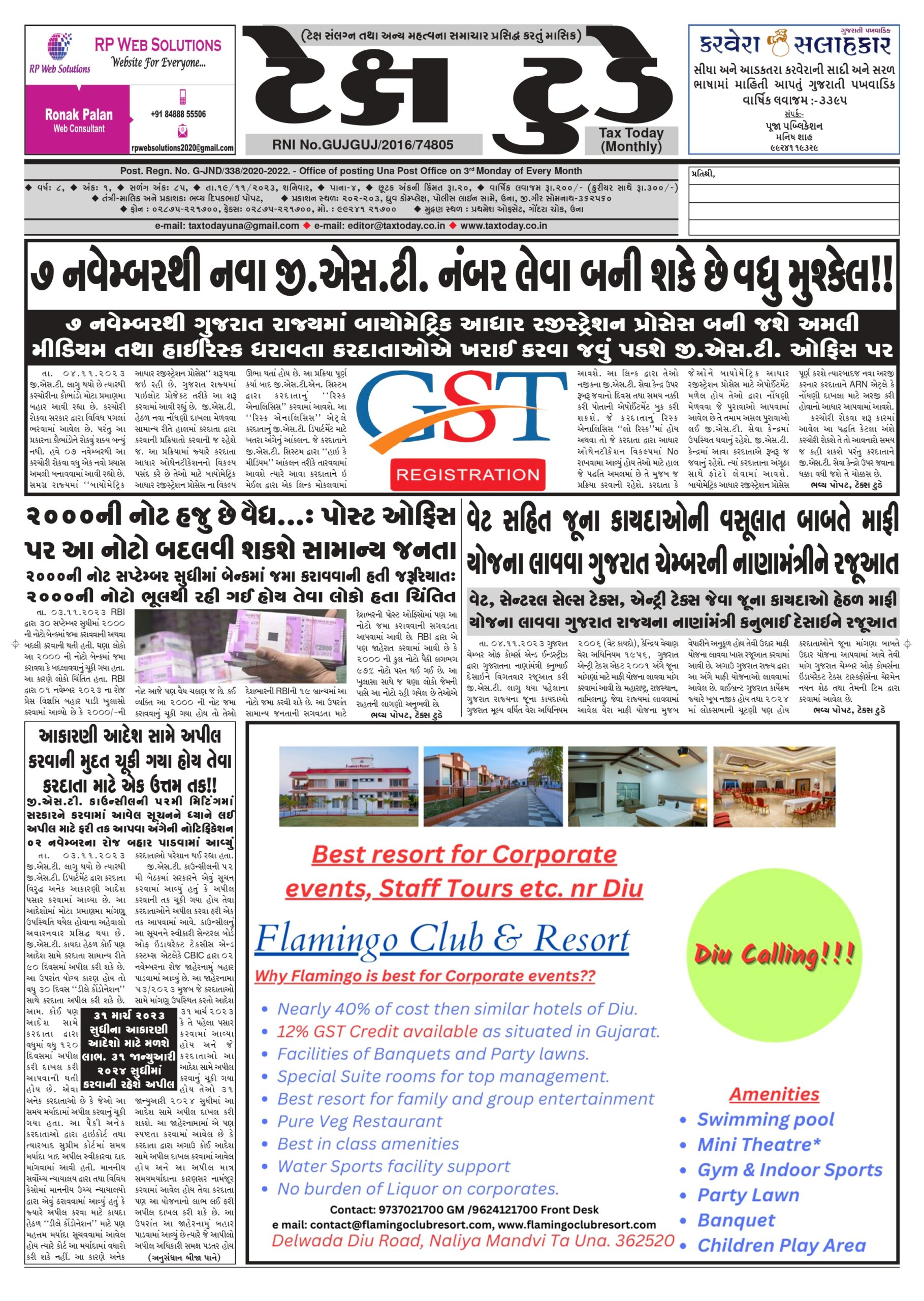 E Edition Top News TAX TODAY NOVEMBER 2023 E EDITION Bhavya Popat November 30, 2023 Spread the loveReading Time: < 1 minute Tax Today-19-11-2023 (1) Continue Reading Previous ઇન્કમ ટેક્સ કાયદા હેઠળ કરદાતાઓને પડી રહી છે આ મુશ્કેલીઓ!! આ મુશ્કેલીઓ દૂર કરવી છે જરૂરી…Next સવાલ આપના જવાબ ટેક્સ ટુડે એક્સપર્ટના (આ કૉલમ દર શનિવારે પ્રસિદ્ધ થશે) Dt 02nd December 2023 More Stories Top News તમાકુ ઉત્પાદનોમાં RSP આધારિત GST: વેપારીઓ માટે રીટર્ન ભરવામાં અનેક મુશ્કેલીઓ Guest Writer (Article from Expert) April 13, 2026 0 Top News GST WEEKLY UPDATE :2/2026-27 (12.04.2026) By CA Vipul Khandhar Guest Writer (Article from Expert) April 13, 2026 0 Top News Financial year just ended!! Do follow this financial Check List by Adv. Ronak Jain Guest Writer (Article from Expert) April 8, 2026 0