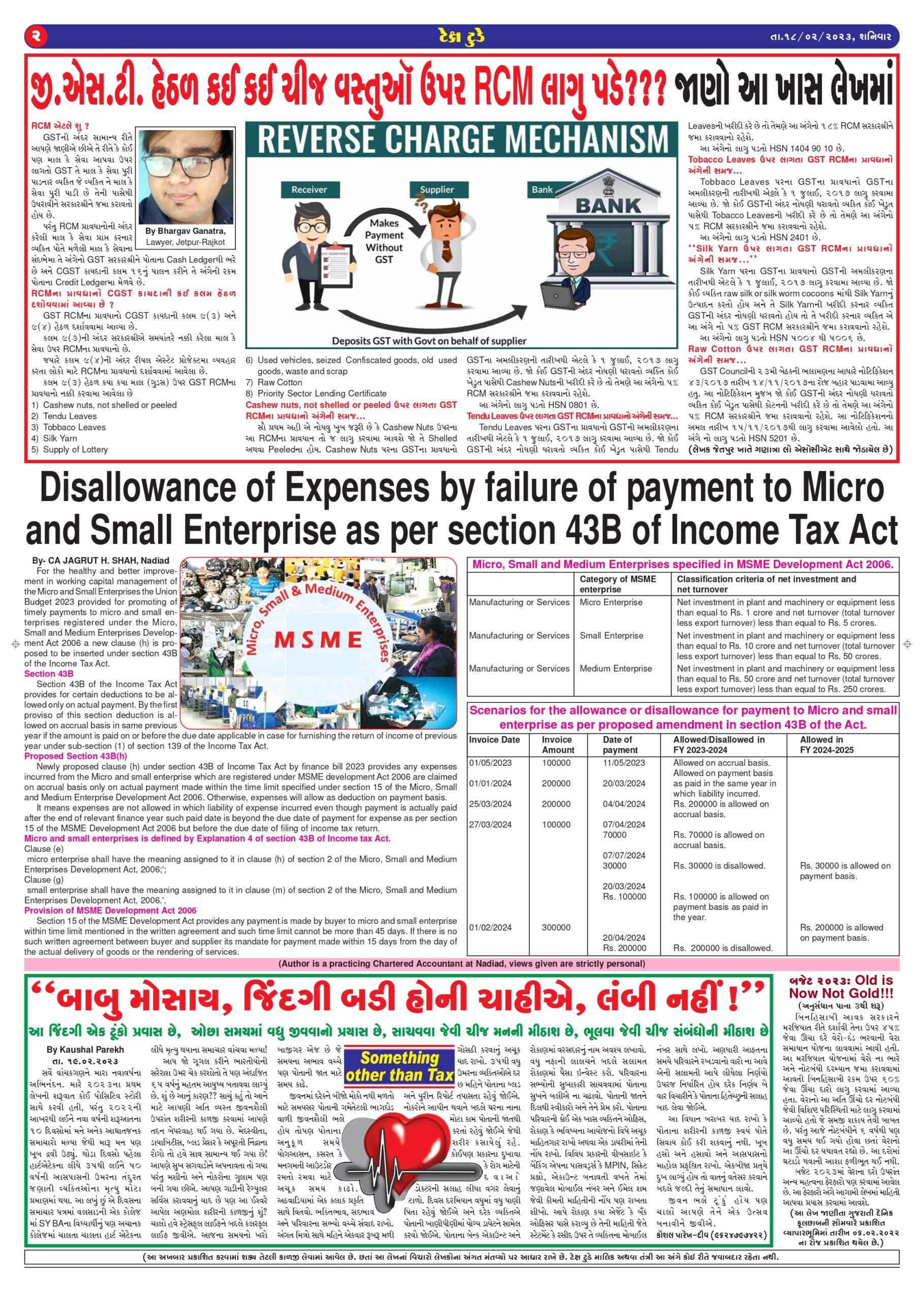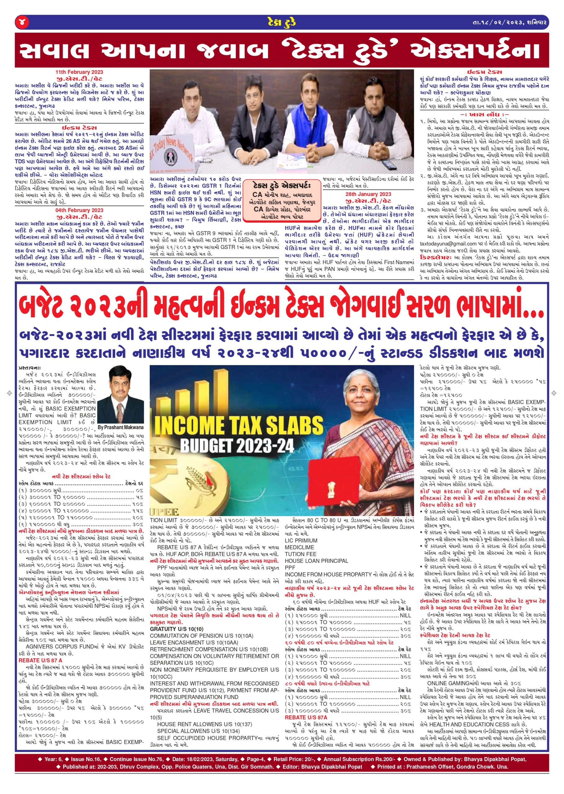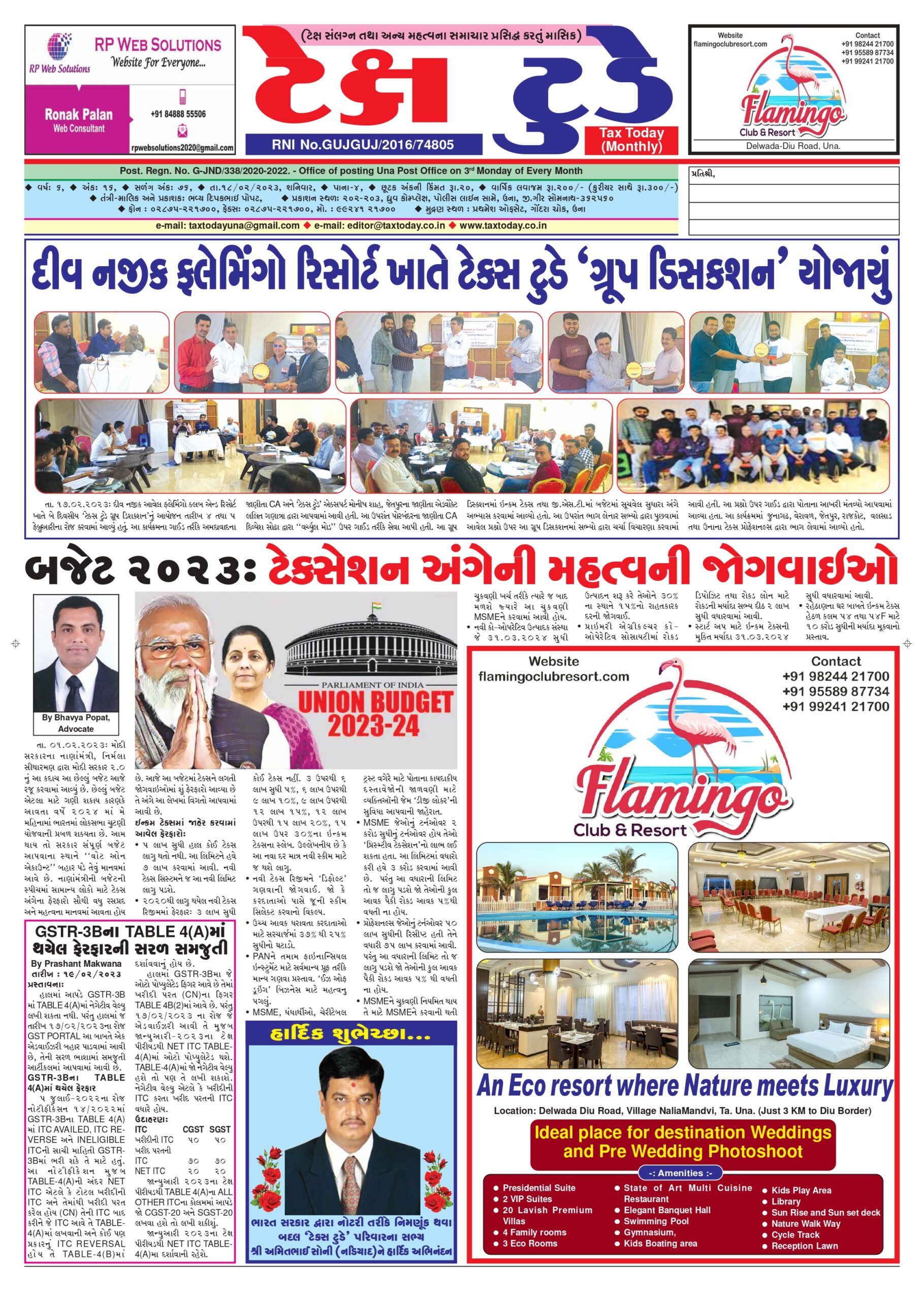 E Edition Top News Tax Today February 2022 Bhavya Popat February 25, 2023 Spread the loveReading Time: < 1 minute Continue Reading Previous કરદાતાના ધંધો કરવા અંગેના બંધારણીય હક્કને જી.એસ.ટી. કાયદાની જોગવાઈ રોકી શકે નહીં: બોમ્બે હાઇકોર્ટNext સવાલ આપના જવાબ ટેક્સ ટુડે એક્સપર્ટના (આ કૉલમ દર શનિવારે પ્રસિદ્ધ થશે) 25th FEBRUARY 2023 More Stories Top News ગુજરાત હાઈકોર્ટનો મહત્વપૂર્ણ ચુકાદો: ટ્રાન્ઝિટ દરમિયાન GST હેઠળ માલ જપ્તી અંગે કડક માપદંડ નક્કી Guest Writer (Article from Expert) January 6, 2026 0 Top News GST WEEKLY UPDATE :40/2025-26 (04.01.2026) Guest Writer (Article from Expert) January 5, 2026 0 Top News ભાગીદારી પેઢીઓ માટે મહત્વનો ફેરફાર: ભાગીદારોને થતી ચુકવણી પર TDS ફરજિયાત Guest Writer (Article from Expert) January 5, 2026 0