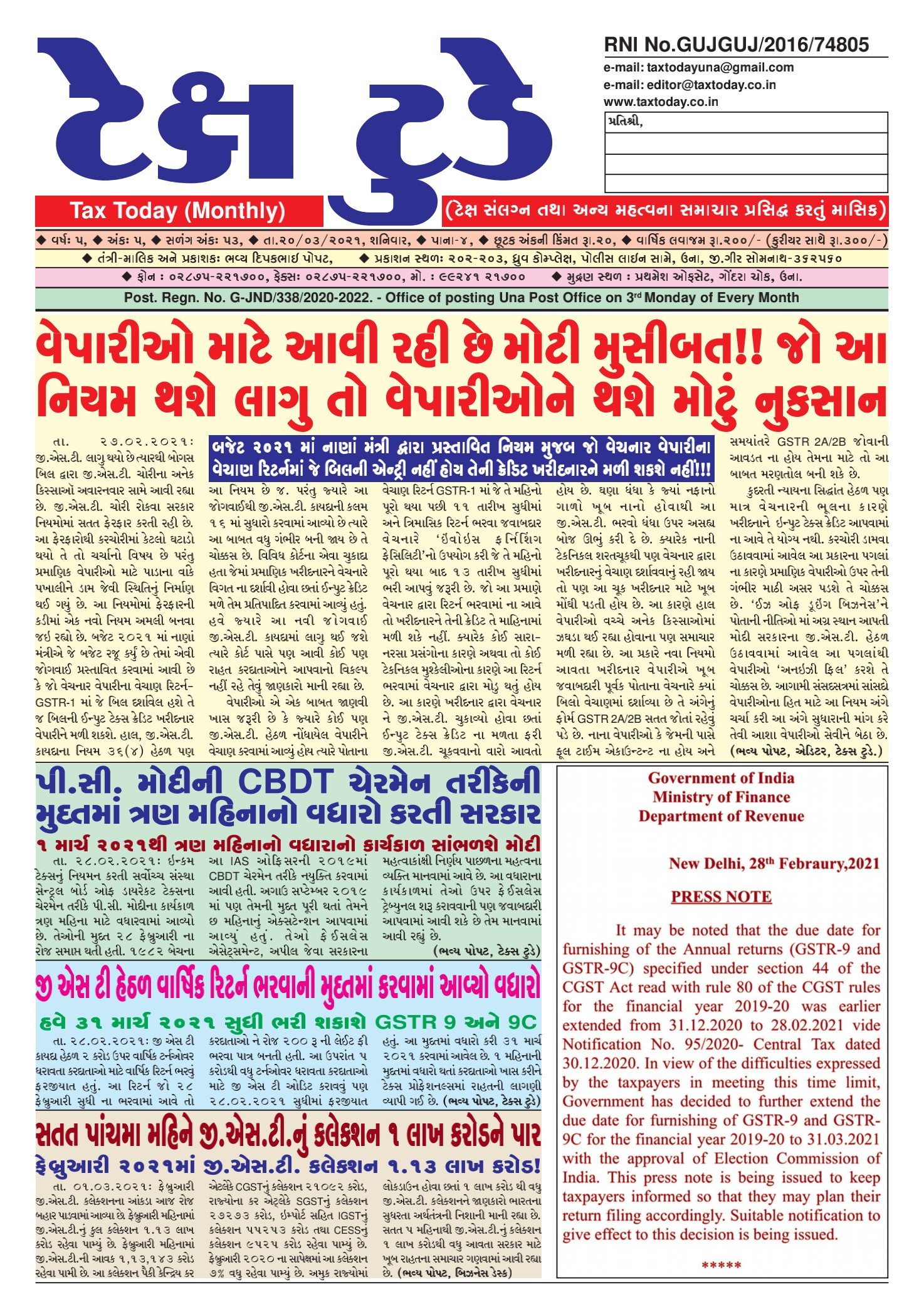 Tax Today News Paper E Edition Tax Today March 2021 Bhavya Popat March 20, 2021 Spread the loveReading Time: < 1 minute Tags: Tax Today, Tax Tofday March Continue Reading Previous Tax Today February 2021Next Tax Today July 2021 More Stories Tax Today News Paper E Edition Top News Tax Today May 2024 E Edition Bhavya Popat May 25, 2024 Tax Today News Paper E Edition Top News Tax Today January 2023 Bhavya Popat January 28, 2023 Tax Today News Paper E Edition Top News Tax Today February 2022 E Edition Bhavya Popat February 19, 2022