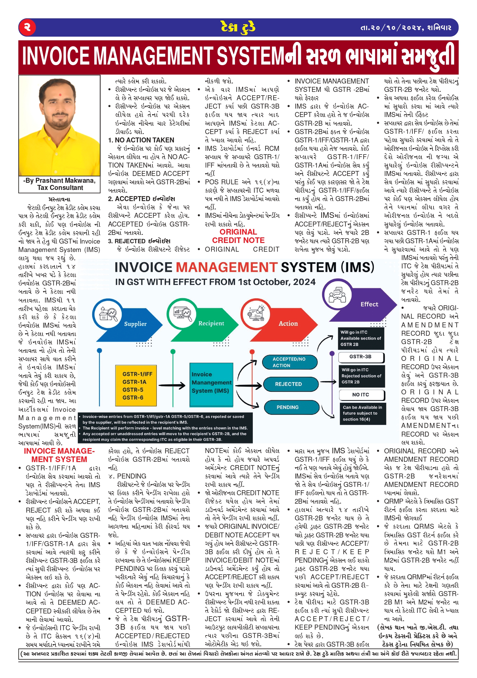 Top News Tax Today October 2024 Bhavya Popat November 30, 2024 Spread the loveReading Time: < 1 minute Tax Today October 2024: To read in PDF please click below Tax Today-October-2024 Continue Reading Previous બાર કાઉન્સિલ ઓફ ગુજરાત દ્વારા નોટરી સી.ઓ.પી માટે રજુઆતNext Tax Today November 2024 E Edition More Stories Top News સર્વે દરમિયાન મળેલા વધારાના સ્ટોક માટે સીધી જપ્તી કરી શકાય નહીં:અલ્હાબાદ હાઈકોર્ટ Guest Writer (Article from Expert) February 11, 2026 0 Top News વિવિધ નાણાકીય વર્ષોને એકસાથે ગણીને GST નોટિસ આપી શકાય નહી: બોમ્બે હાઇકોર્ટનો મહત્વપૂર્ણ ચુકાદો Guest Writer (Article from Expert) February 10, 2026 0 Top News GST WEEKLY UPDATE :45/2025-26 (08.02.2026) By CA Vipul Khandhar Guest Writer (Article from Expert) February 10, 2026 0