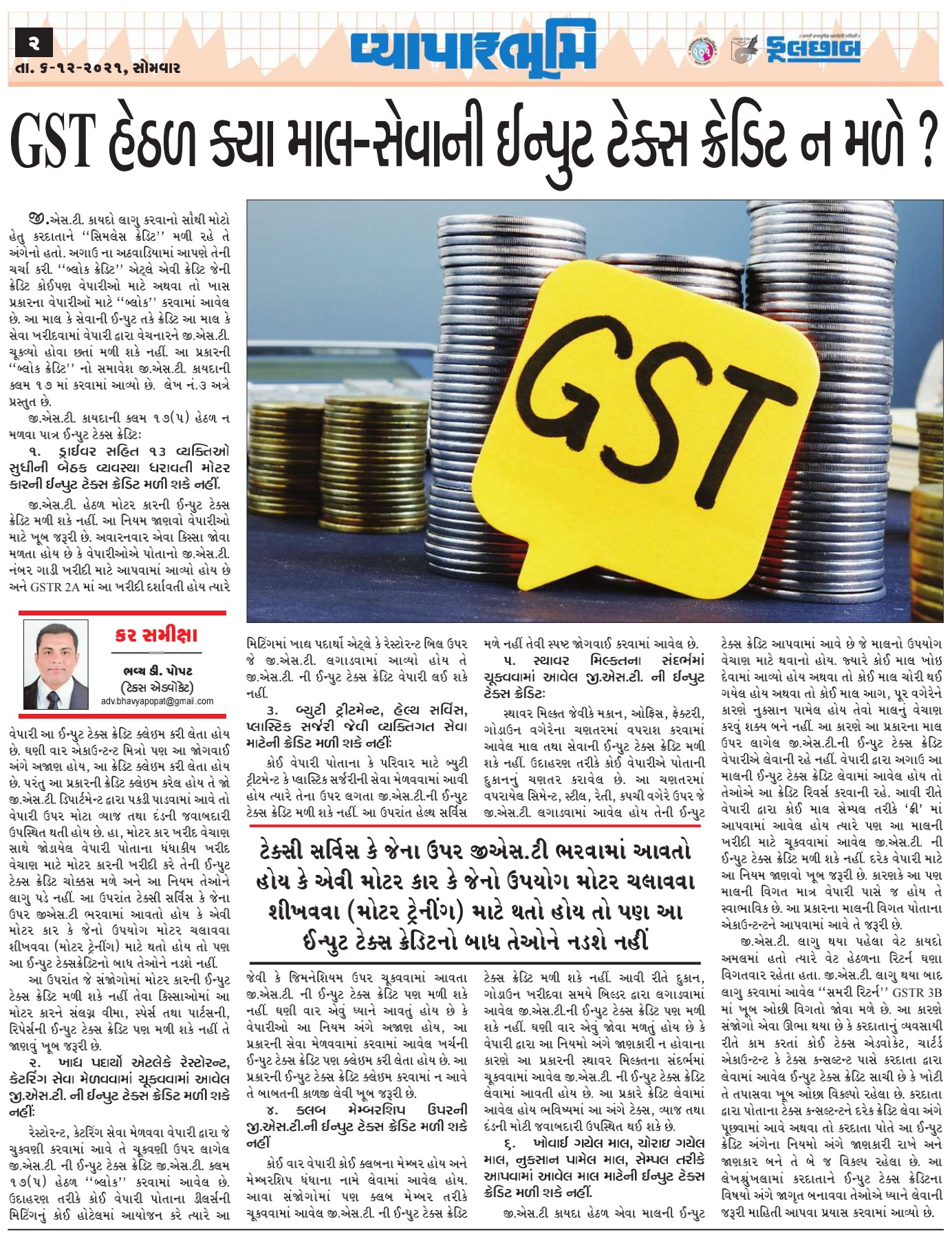 (આ લેખ જાણીતા દૈનિક ફૂલછાબની વ્યાપારભૂમિ પૂર્તિમાં તા 06.12.2021 ના રોજ પ્રકાશિત થયેલ છે)